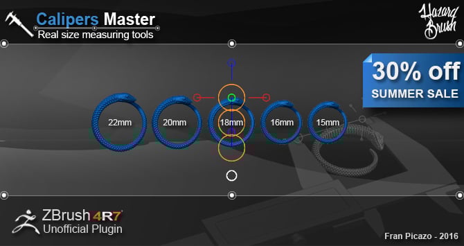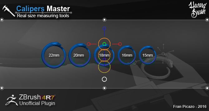 Calipers Master v2 is a plugin created by Fran Picazo to help Zbrush artist in the 3D printing production workflow.